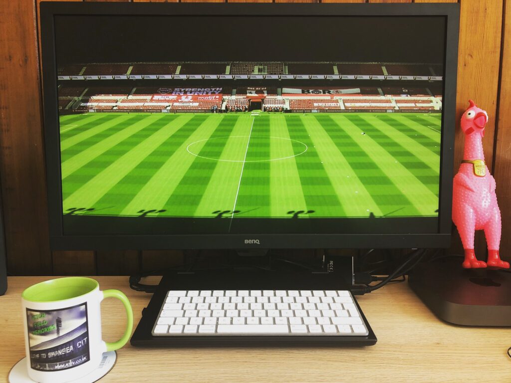 And I’ve got used to watching games at home on the iPad or the Mac, with a strong cup of tea in my Vetch Field Memories mug or a weak can of cheap cider in my Swans plastic tankard.